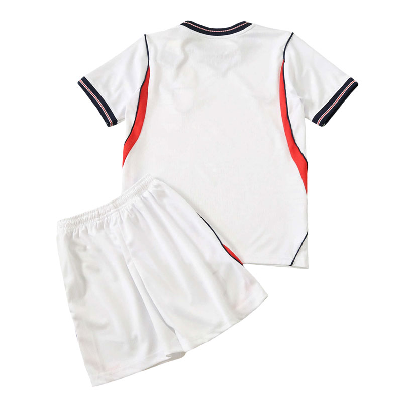 Das England Kinder Fußballtrikot 2026 WM – Heimtrikot Set mit Shorts verbindet die traditionsreiche Geschichte des englischen Fußballs mit einem modernen Look, der sofort ins Auge fällt. Das klassische weiße Design bleibt erhalten, wird jedoch durch feine, in den Stoff integrierte Details ergänzt, die von der Fußballkultur Englands inspiriert sind. So wirkt das England Trikot Kinder 2026 gleichzeitig zeitlos und frisch – perfekt für junge Fans auf und neben dem Platz.