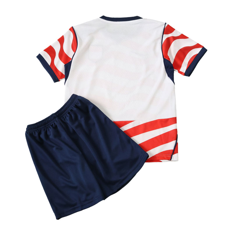 Das USA Heimtrikot Kinder 2026 bringt frischen Schwung in jedes Training und Spiel. Inspiriert von den ikonischen Streifen der amerikanischen Flagge zeigt dieses Fußballtrikot Kinder ein dynamisches, wellenförmiges Design in kräftigen Rottönen, Off-White und Navy-Blau. Der moderne Look macht dieses USA Trikot 2026 Kinder zu einem echten Hingucker auf dem Platz und in der Freizeit.